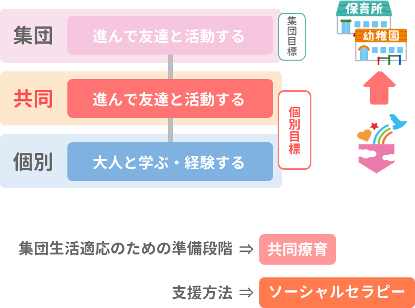 - 個別支援と集団の橋渡しの役割を担う