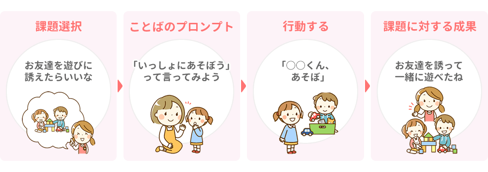 集団生活でのお困りごとに対し、お友達が居る場で練習します- お友達と一緒に活動するために大切なちから